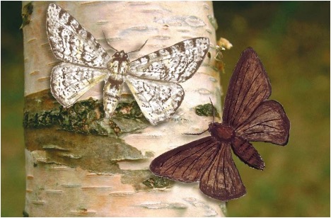 Abb. 1: Helle und dunkle Form des Birkenspanners